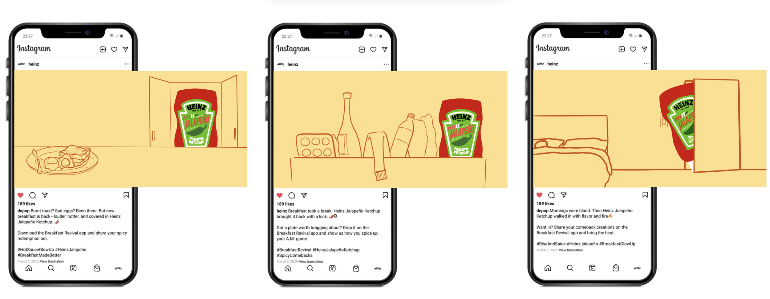 About the app: Heinz: Breakfast Revival, is a social platform where users post pics of their creative morning meals that have been brought back to life with Heinz Jalapeño Ketchup.